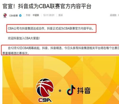所以从12月12日晚间的CBA揭幕战起,抖音集团相关平台如抖音、今日头条等平台;