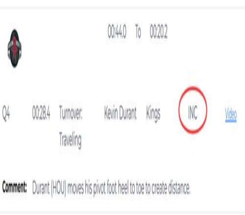 第一次是漏判,发生在距离第四节结束还有1分57秒,裁判报告指出,火箭的杜兰特未在8秒内将球推进前场。这是一次漏吹的8秒违例,火箭获利,国王吃亏。