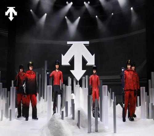 「问顶未来」品牌大秀,就以产品为语言,展开了关于未来的叙事:光影交织中,时空之门缓缓打开,身着未来感装备的「使者」从高空滑入秀场。环幕之上,雪峰渐显,30套走秀造型悉数登场,其中就包含迪桑特为中国国家高山滑雪队和中国国家U型池场地队所打造的米兰冬奥比赛服。