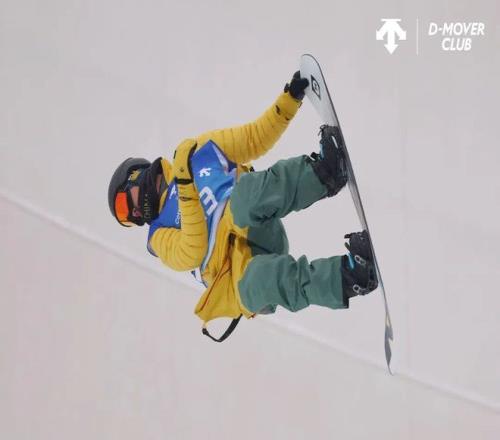 迪桑特品牌单板滑雪大使王梓阳在比赛中