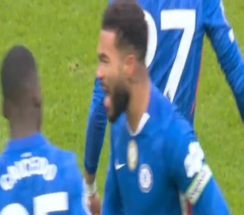 比赛的第49分钟,切尔西获得禁区前任意球,帕尔默、里斯-詹姆斯都站在了球前,后者突然右脚劲射,球绕过人墙之后飞入球门死角。