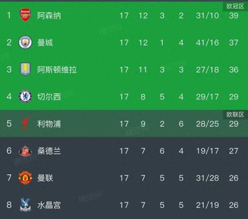 英超积分榜,维拉21,豪取10连胜,稳居第三,曼联再次无缘前五