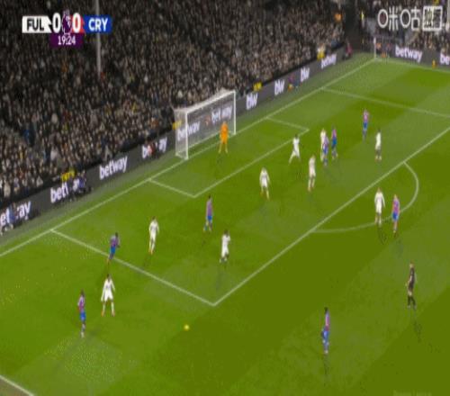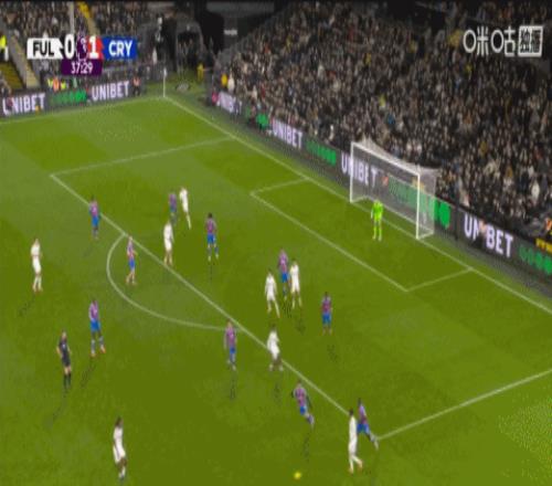 第87分钟,皮诺开出角球,格伊头球破门,水晶宫2-1富勒姆